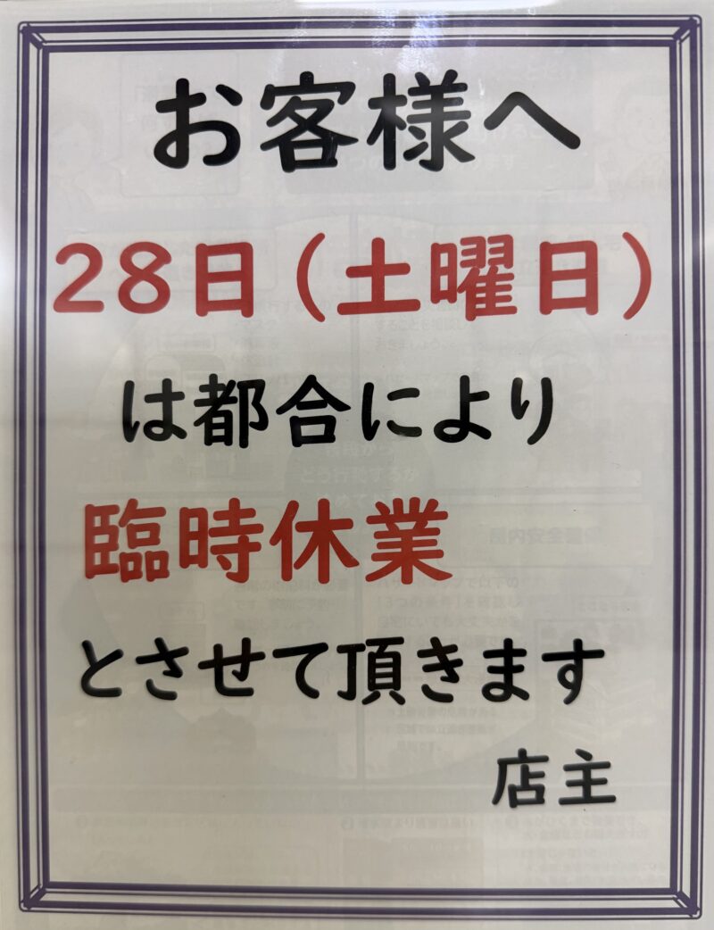 臨時休業のお知らせ