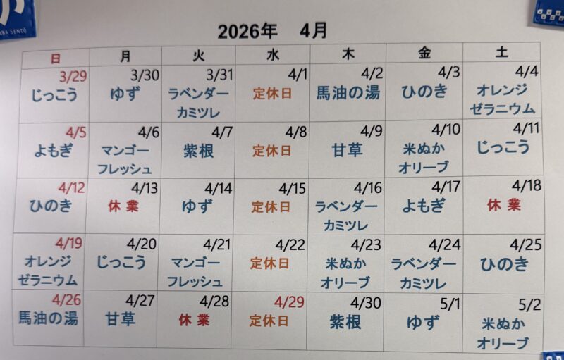 4月の薬湯予定
