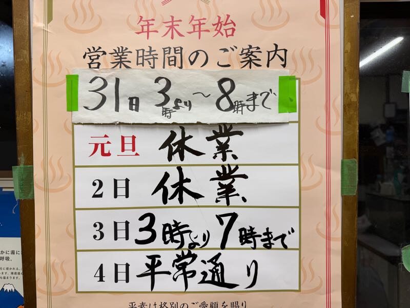 【並木湯】年末年始営業のお知らせ【相模原市中央区】